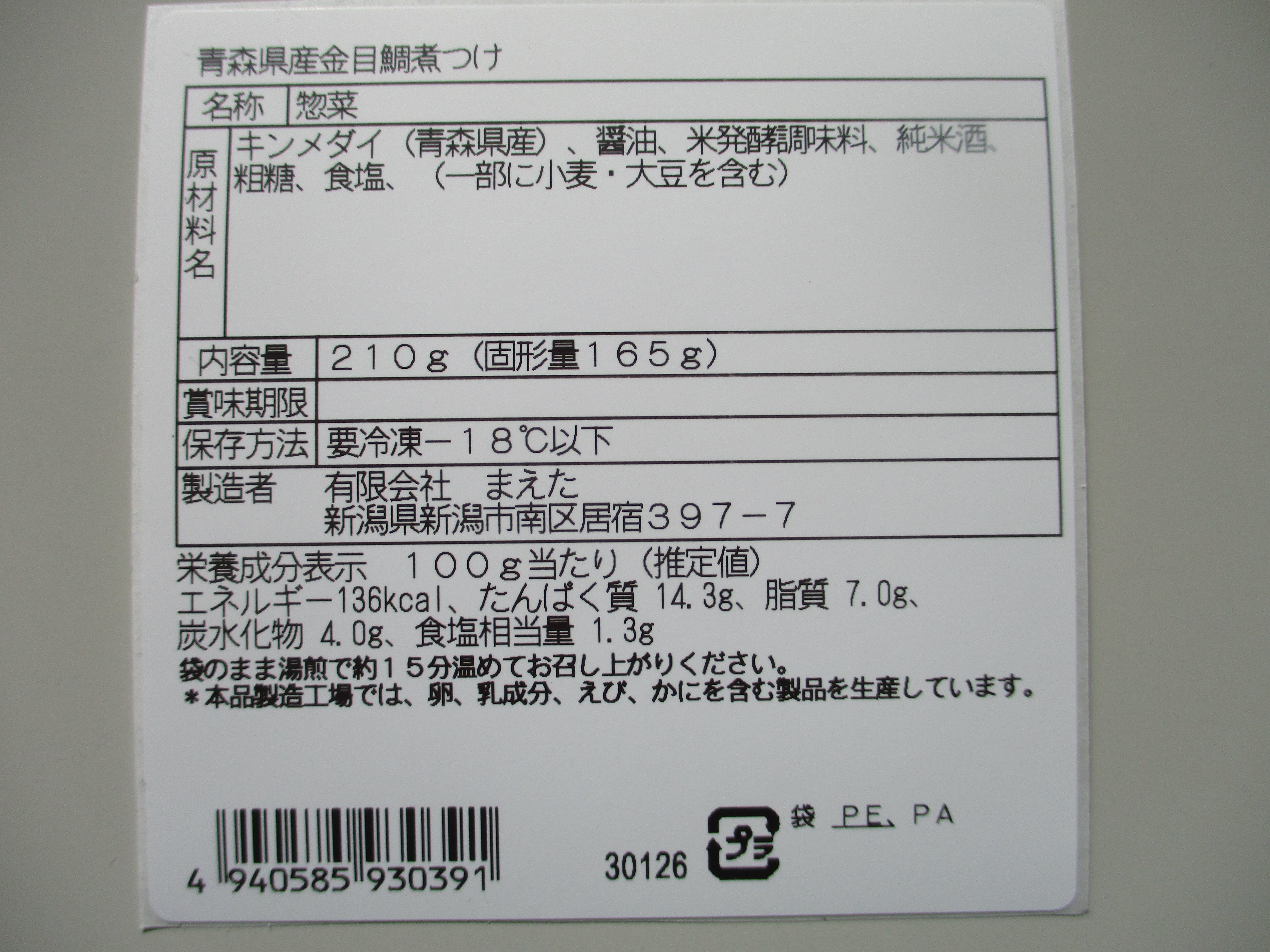 賞味期限:冷凍180日