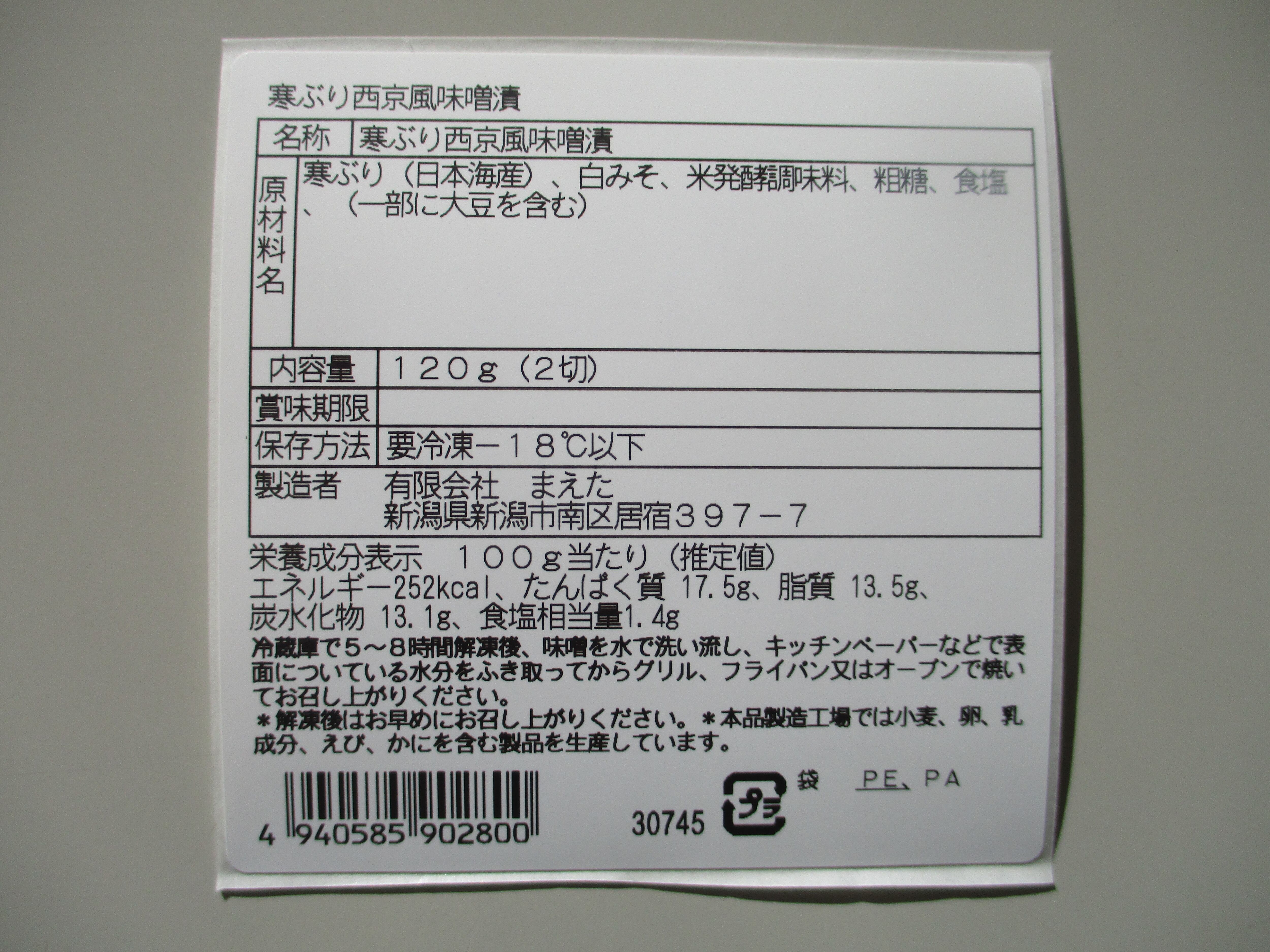 商品を冷蔵庫で解凍後西京風味噌をさっと水で洗い流しキッチンペーパーで表面の水をふきとりグリル又はフライパンで弱火から中火で片面を5~6分焼いてお召し上がり下さい